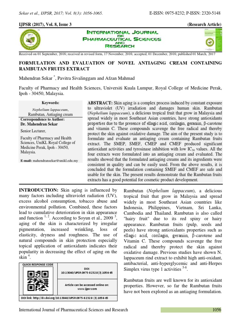 system of medicine. Rambutan fruits (pulp, seeds of skin aging, skin sun protection or skin cancer.
