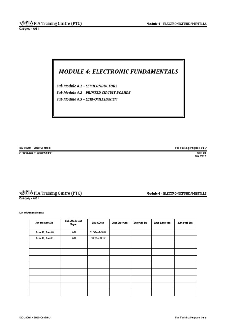 PIA Training Centre (PTC) Module 4 – ELECTRONIC FUNDAMENTALS