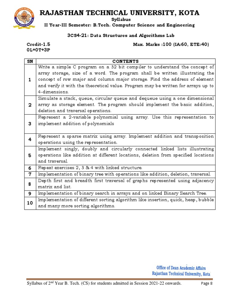 Syllabus of 2nd Year B. Tech. (CS) for students admitted in Session 2021-22 onwards. Page 8