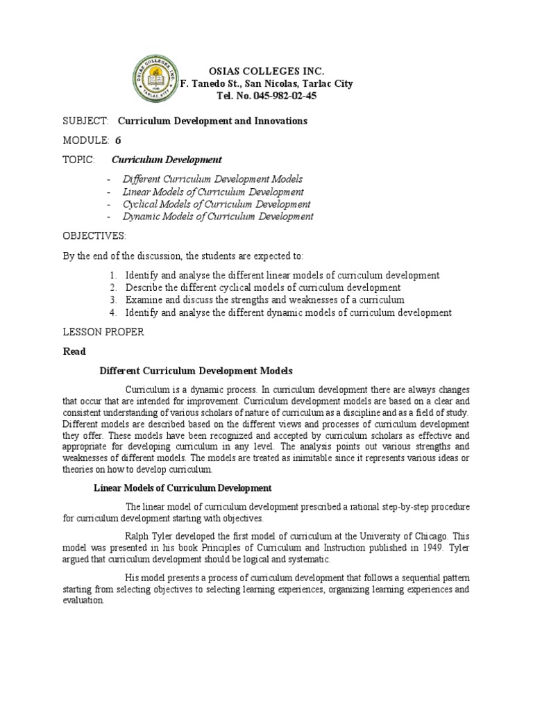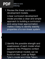 1. Review the linear curriculum development models. Identify the possible strengths