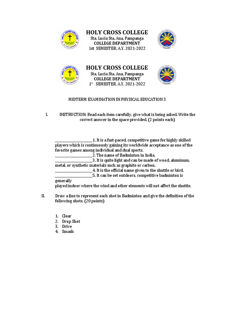 MIDTERM EXAMINATION IN PHYSICAL EDUCATION 3