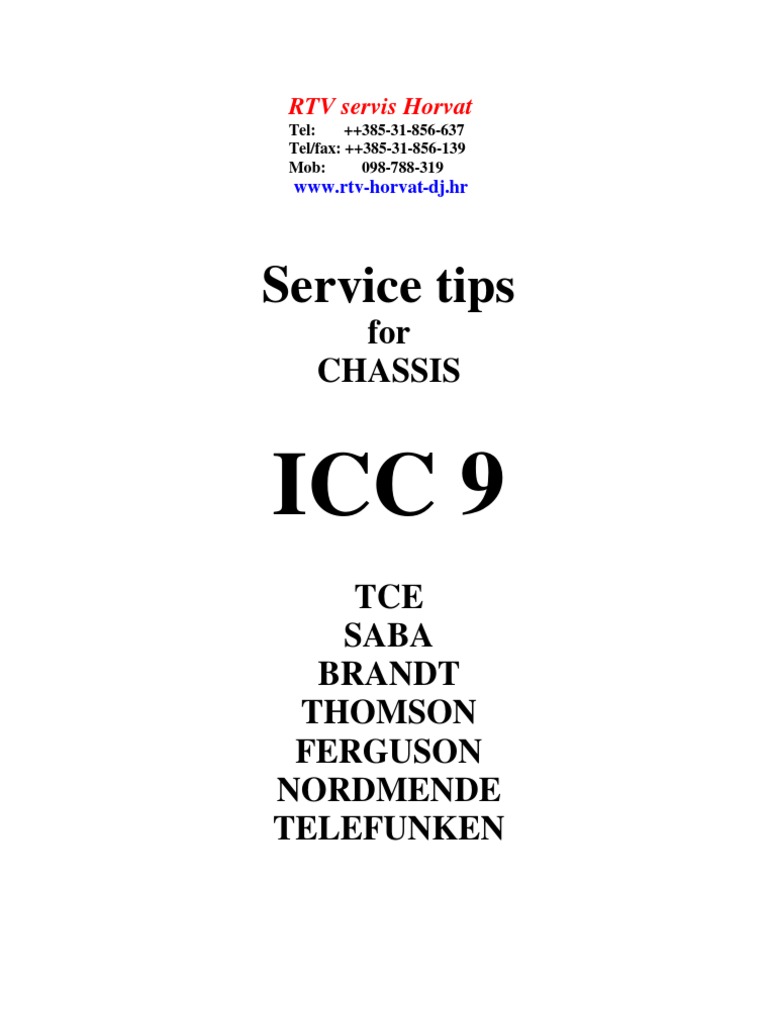 Micro software version type: C9-20 Main chassis sub code: ICC9 777 Teletext PCB type no: DVT 9002