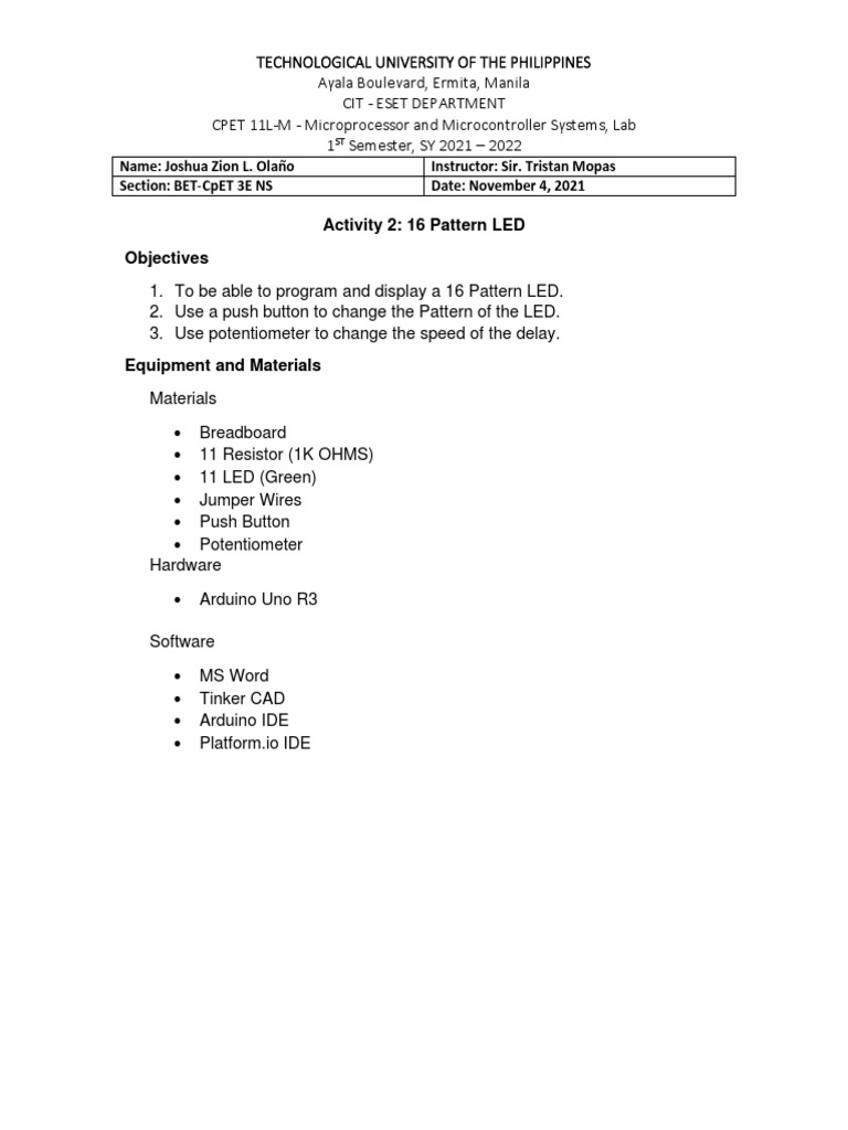 Name: Joshua Zion L. Olaño Instructor: Sir. Tristan Mopas