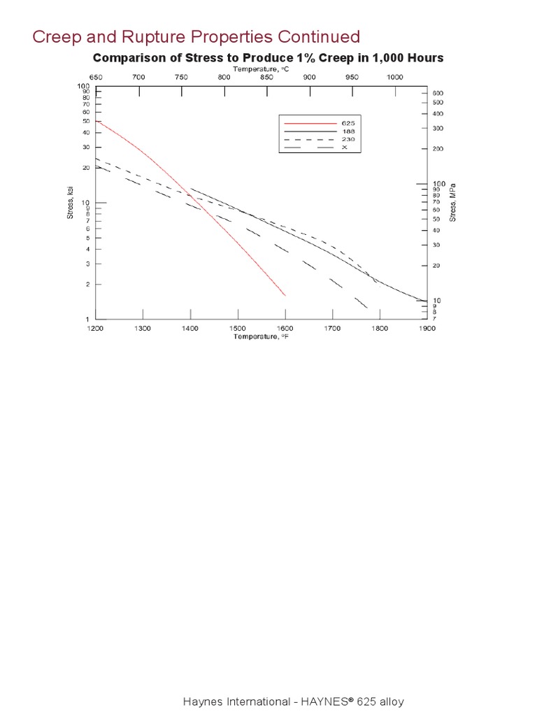 Creep and Rupture Properties Continued: Comparison of Stress To Produce 1% Creep in 1,000 Hours