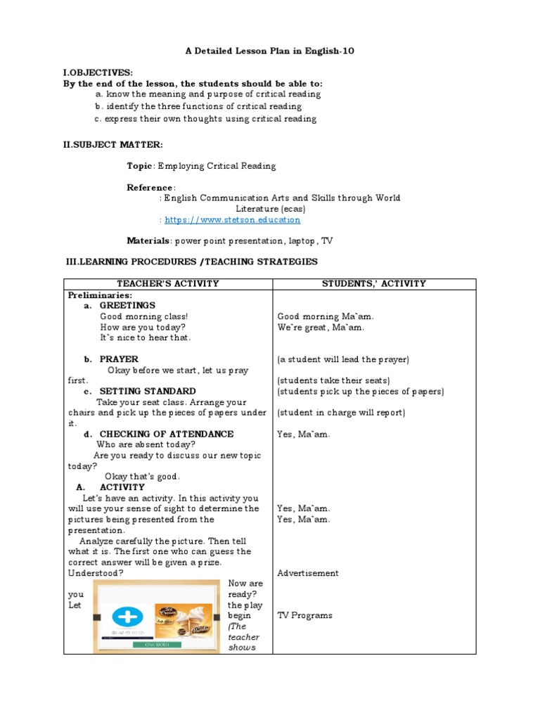 A Detailed Lesson Plan in English-10