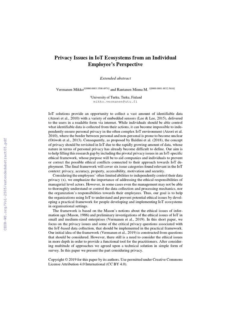 6. Vermanen, M., Rantanen, M. M., & Harkke, V. (2019). Ethical Challenges of IoT Utilization