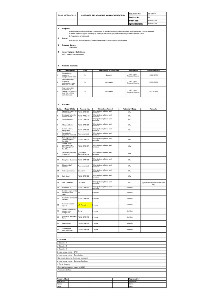 The purpose of this documented information is to define methodology adopted in the organization for 1) CRM activities