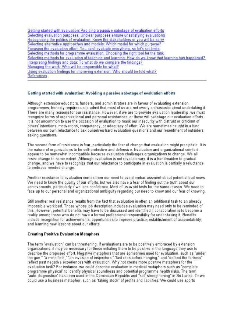 The term "evaluation" can be threatening. If evaluations are to be positively embraced by extension
