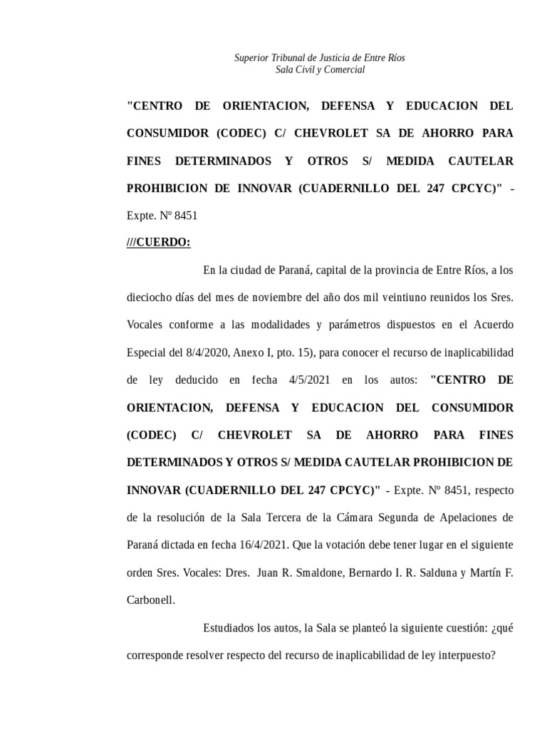 CONSUMIDOR (CODEC) C/ CHEVROLET SA DE AHORRO PARA