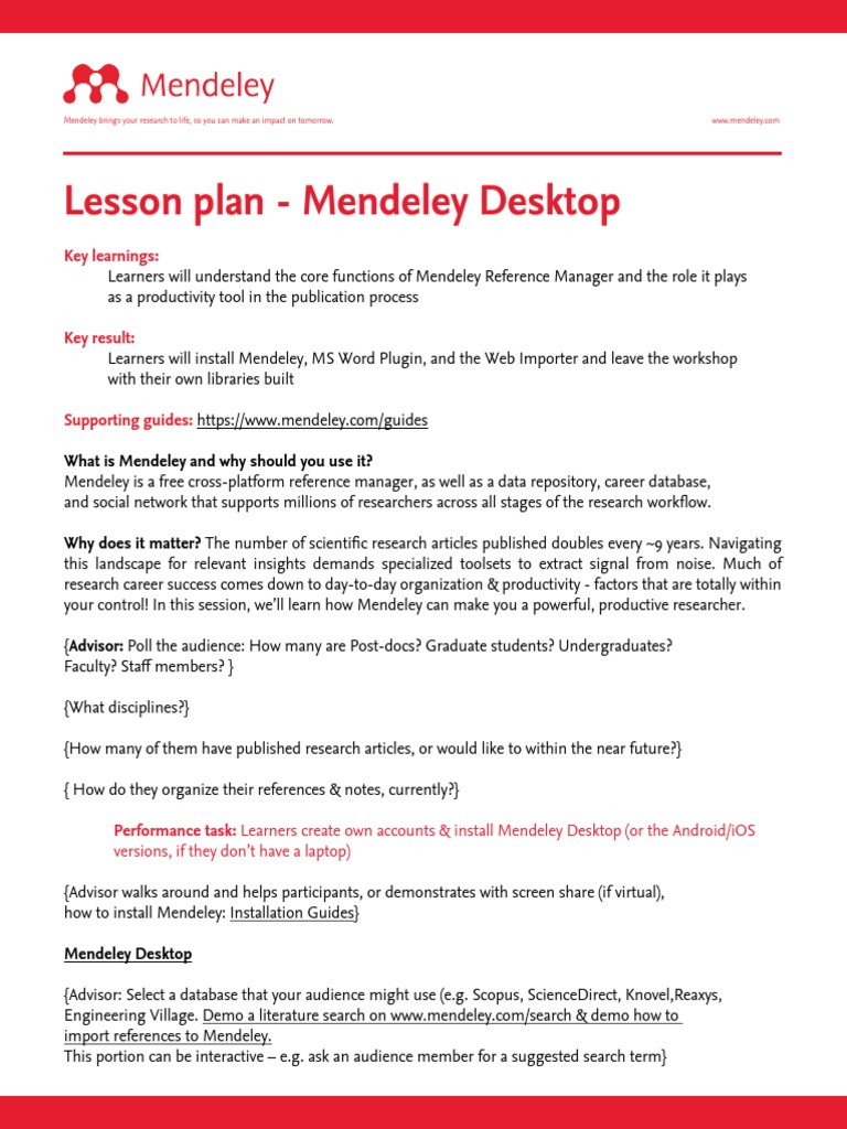 Lesson plan - Mendeley Desktop