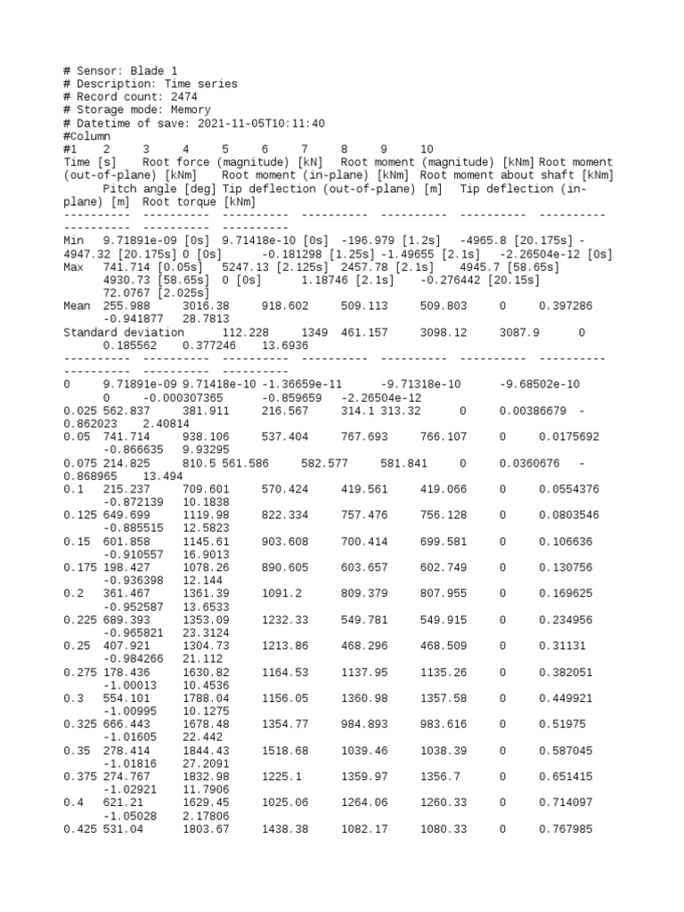 Time [s] Root force (magnitude) [kN] Root moment (magnitude) [kNm] Root moment