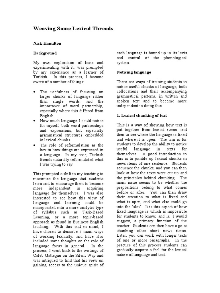 of working lexically, and have also Later, you can work with longer texts