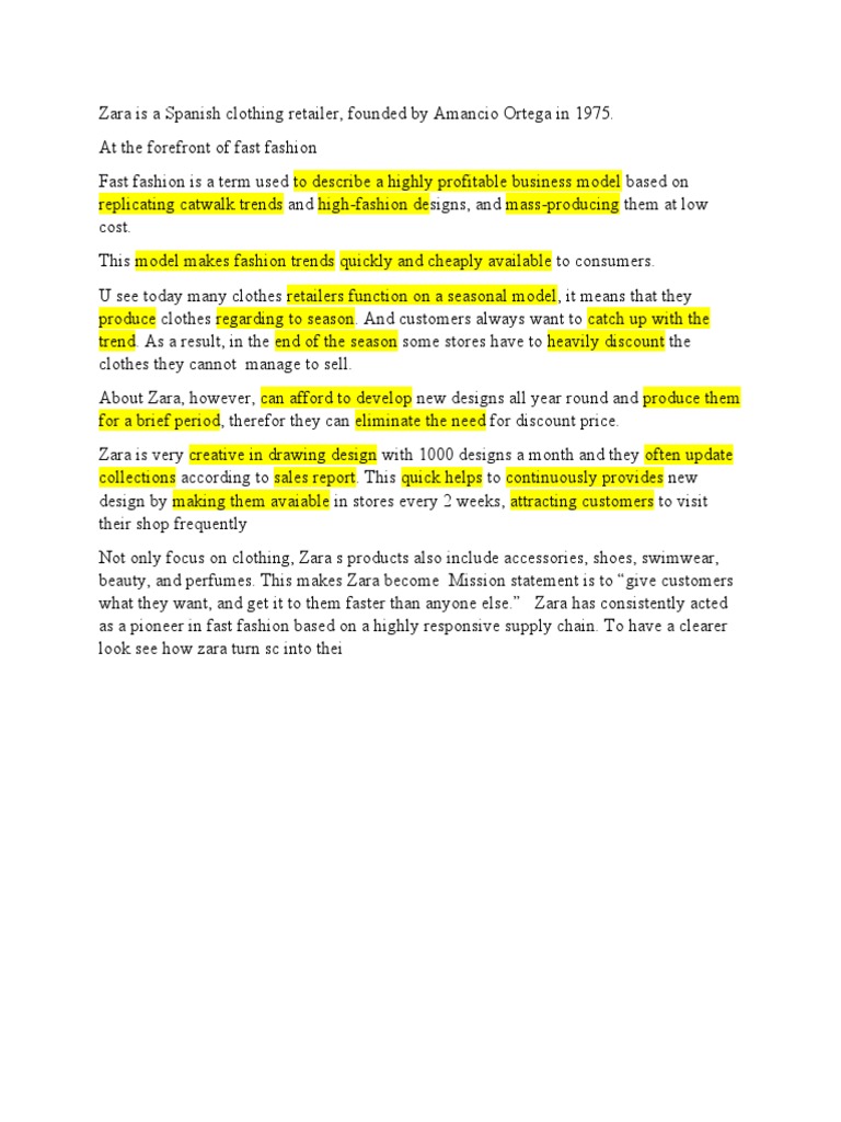 as a pioneer in fast fashion based on a highly responsive supply chain. To have a clearer