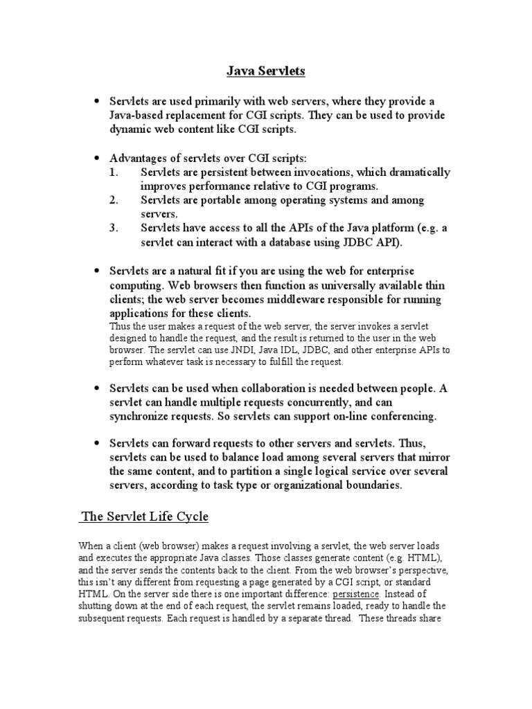 Because servlets are persistent, you can eliminate a lot of filesystem and/or database