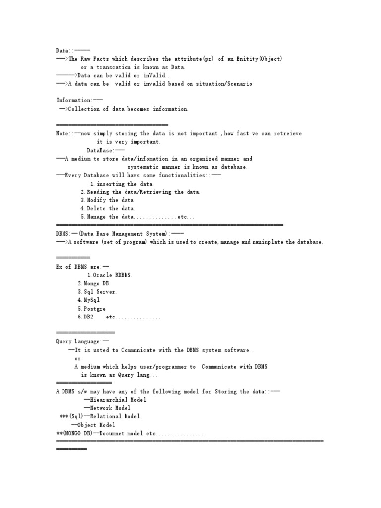 DBMS:--(Data Base Management System):----