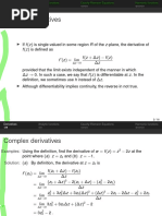 𝑑𝑤 𝑓 𝑧 + 𝛥𝑧 − 𝑓 𝑧 𝛥𝑤 𝛥𝑢 + 𝑖Δ𝑣 which the first partial derivatives of u and v are continuous in a region