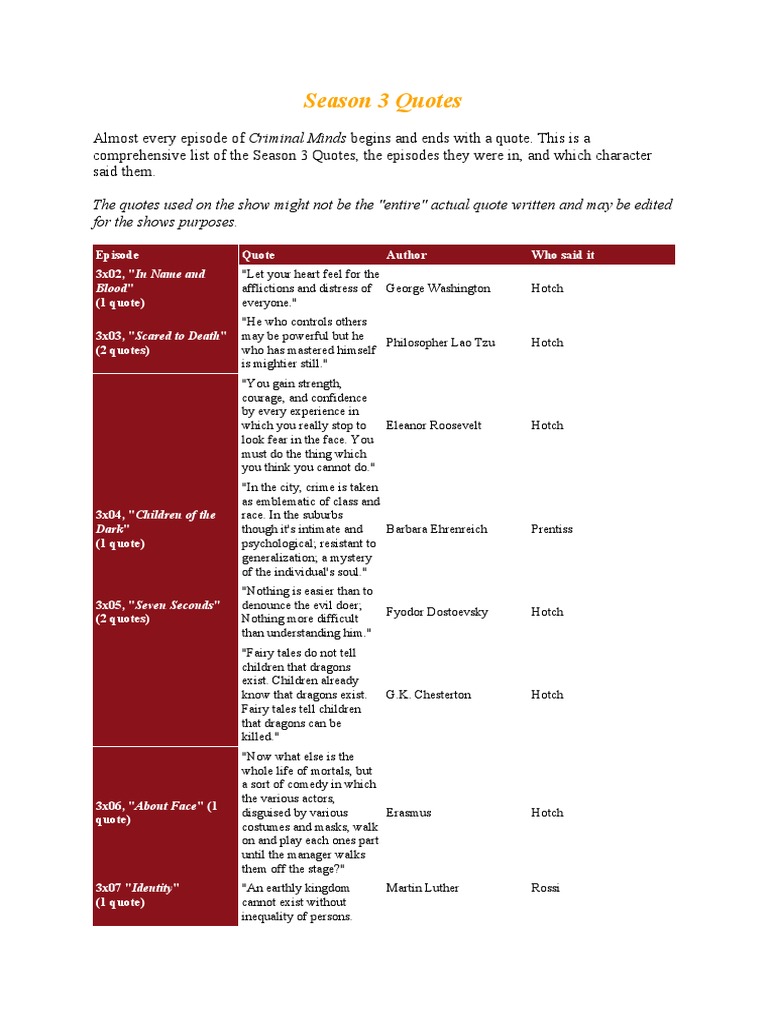 Almost every episode of Criminal Minds begins and ends with a quote. This is a