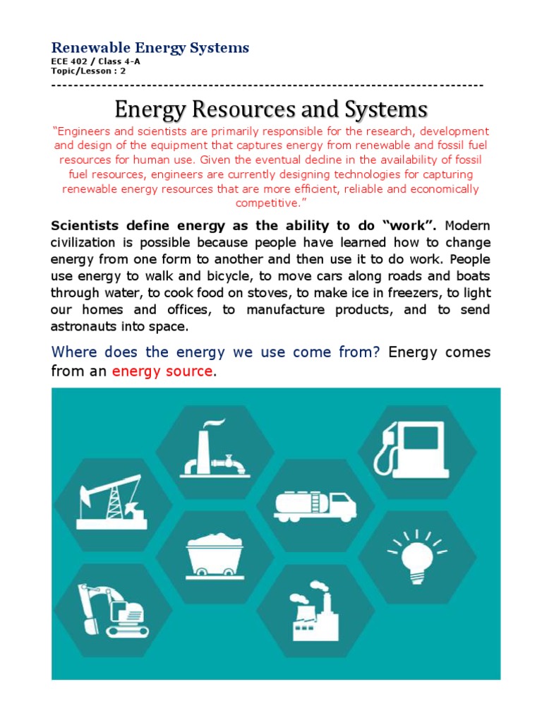• Fossil fuels – chemical (petroleum, natural gas, coal) energy
