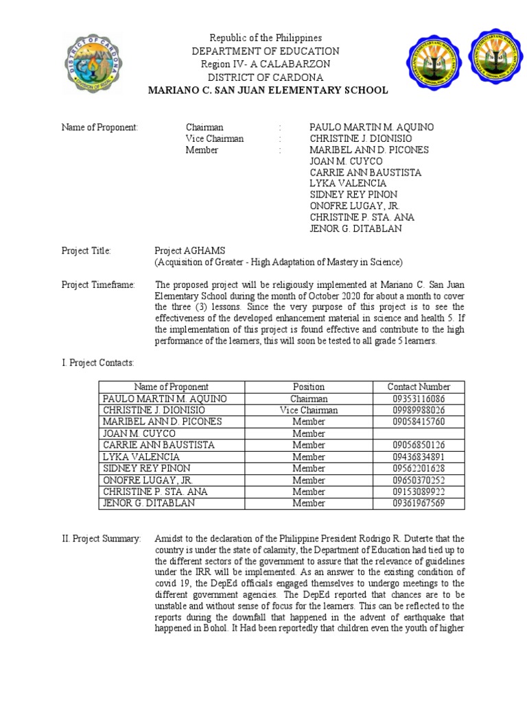 II. Project Summary: Amidst to the declaration of the Philippine President Rodrigo R. Duterte that the