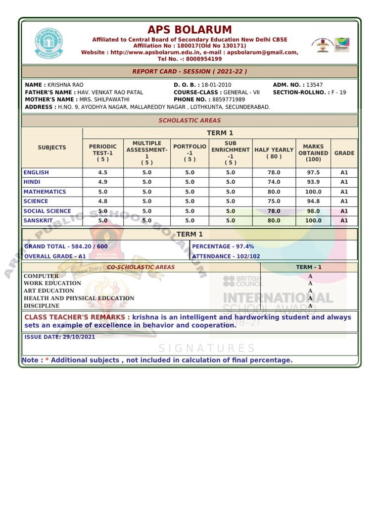 REPORT CARD - SESSION ( 2021-22 )