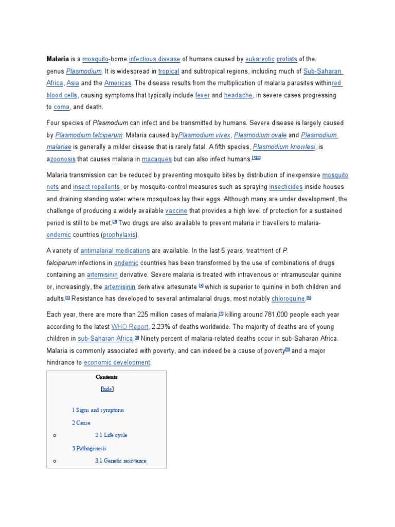80. ^ If I get malaria, will I have it for the rest of my life? CDC publication, Accessed 14 November