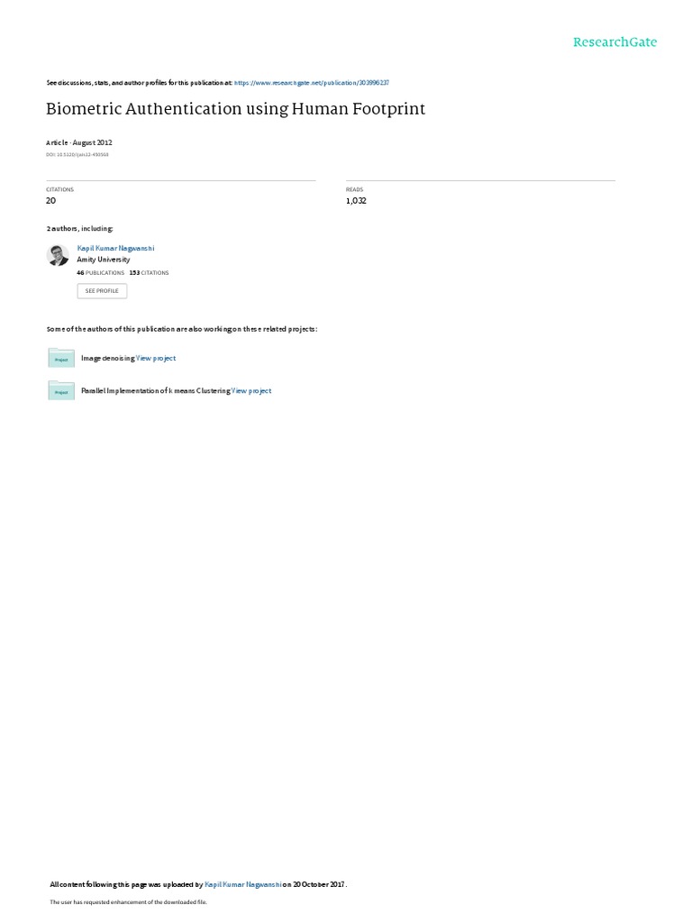 [15] V. Kumar and M.Ramakrishnan, "Footprint Recognition Applications (0975 – 8887), vol. 35, no. 11, pp. 9-16,