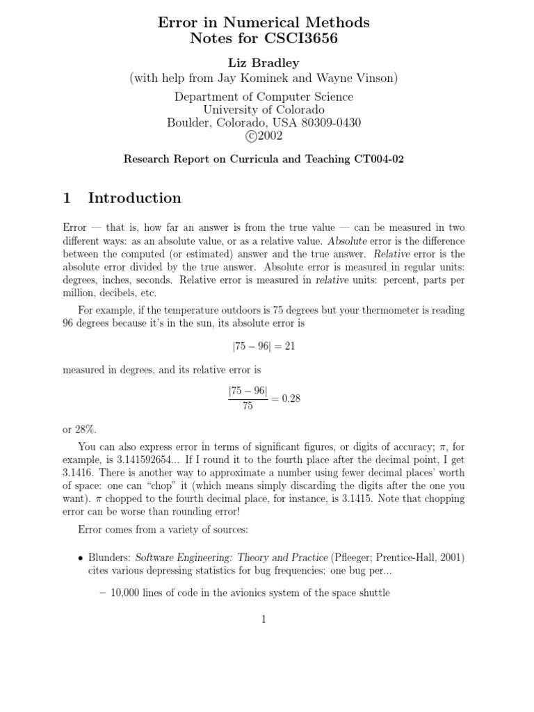 • Truncation: comes from the approximation that is inherent in numerical algorithms.