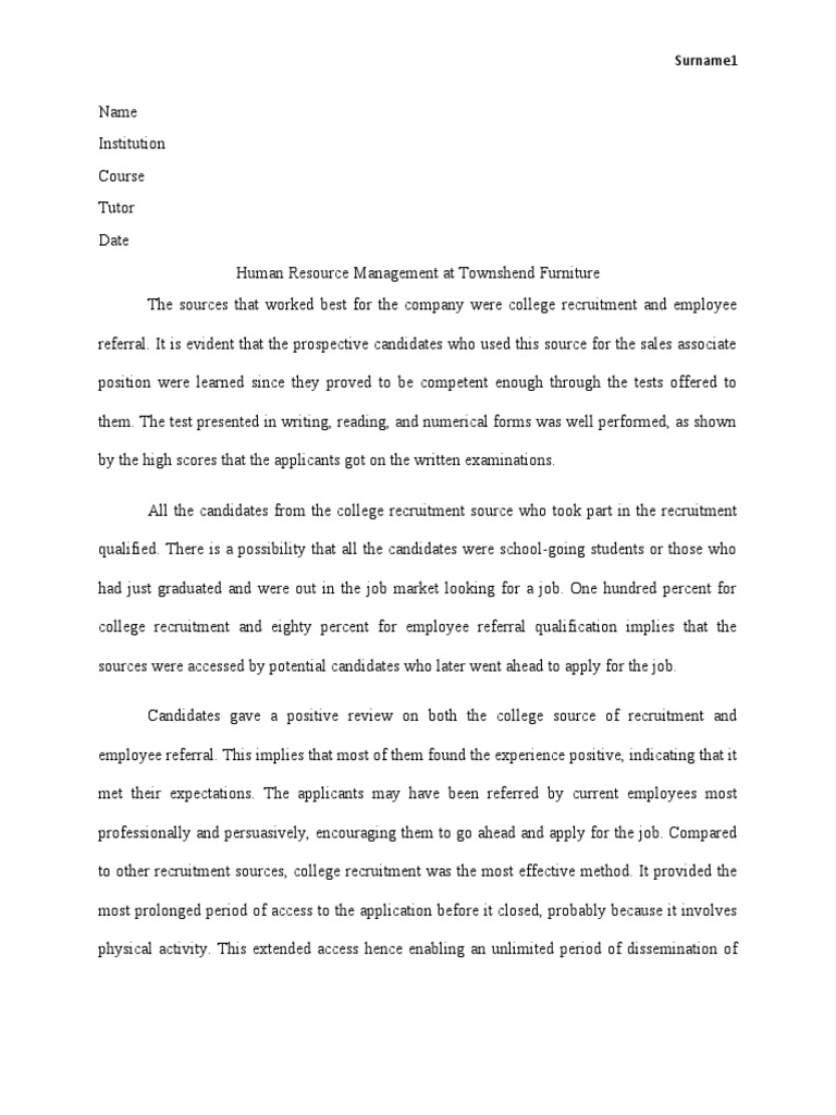 Human Resource Management at Townshend Furniture