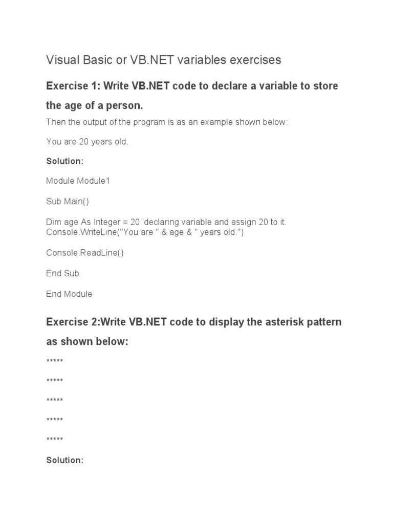 NET variables exercises