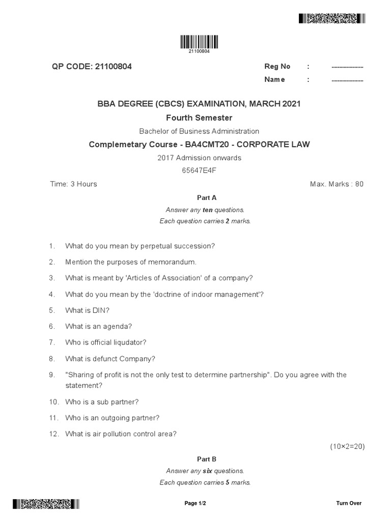 Complemetary Course - BA4CMT20 - CORPORATE LAW
