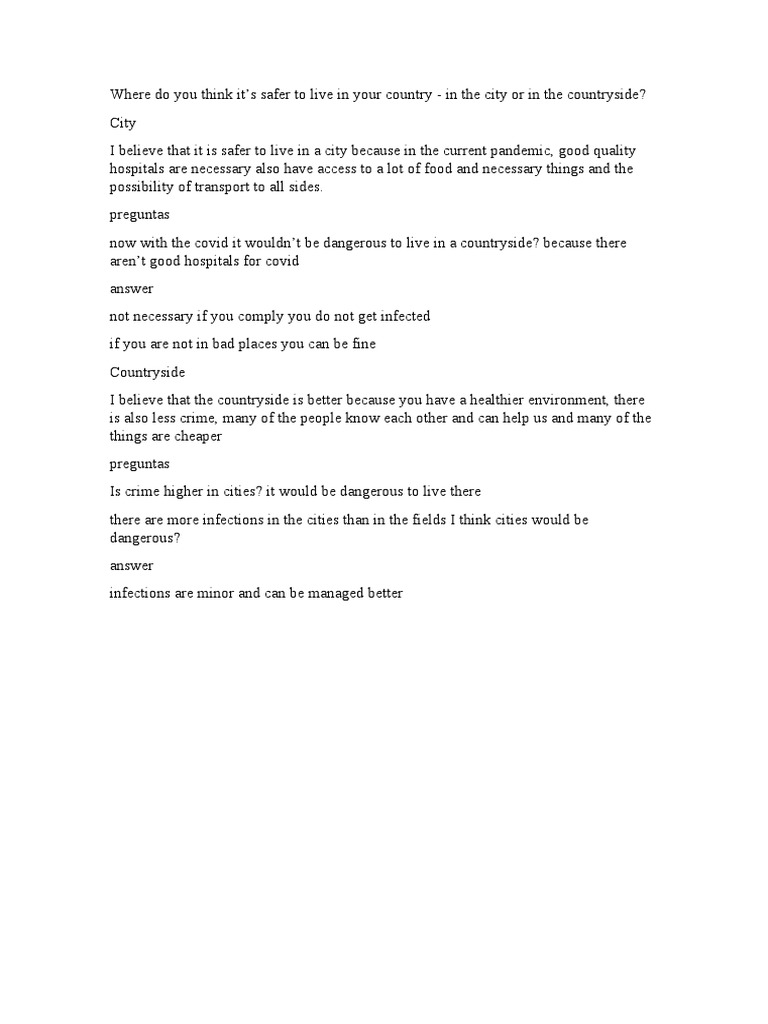 I believe that it is safer to live in a city because in the current pandemic, good quality
