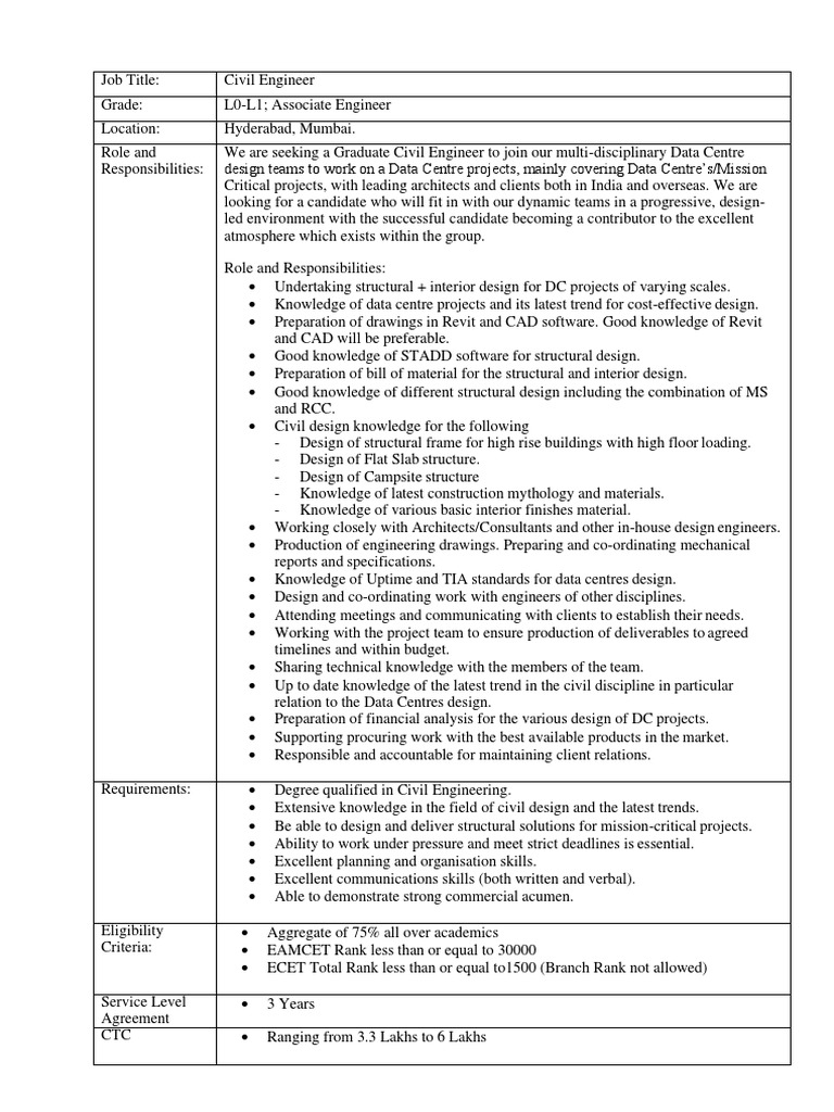 Role and We are seeking a Graduate Civil Engineer to join our multi-disciplinary Data Centre