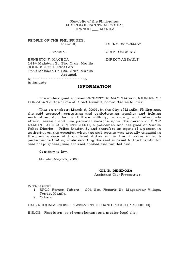 ERNESTO F. MACEDA DIRECT ASSAULT