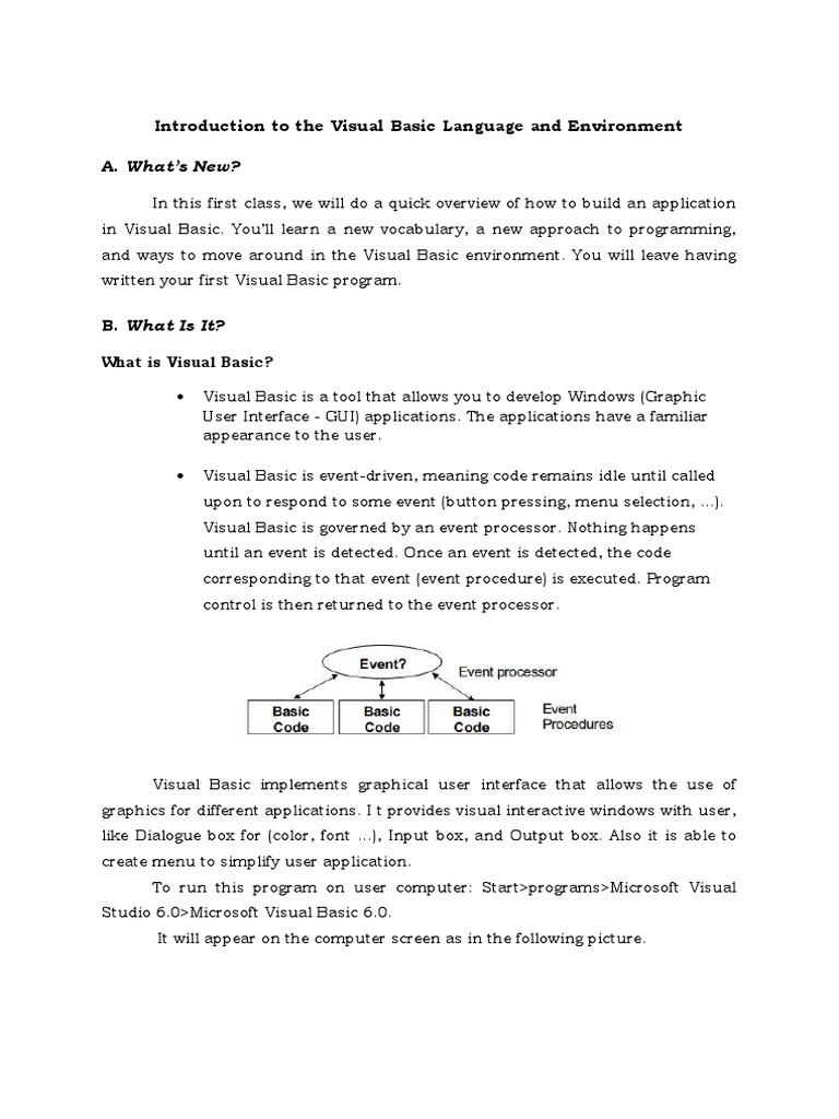Introduction to the Visual Basic Language and Environment