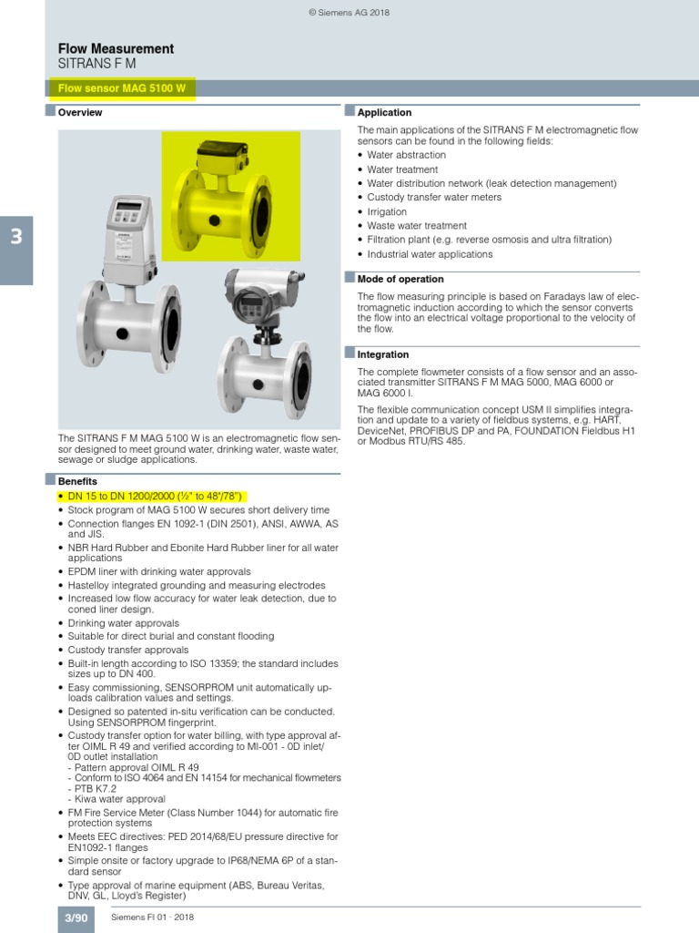 The SITRANS F M MAG 5100 W is an electromagnetic flow sen- or Modbus RTU/RS 485.