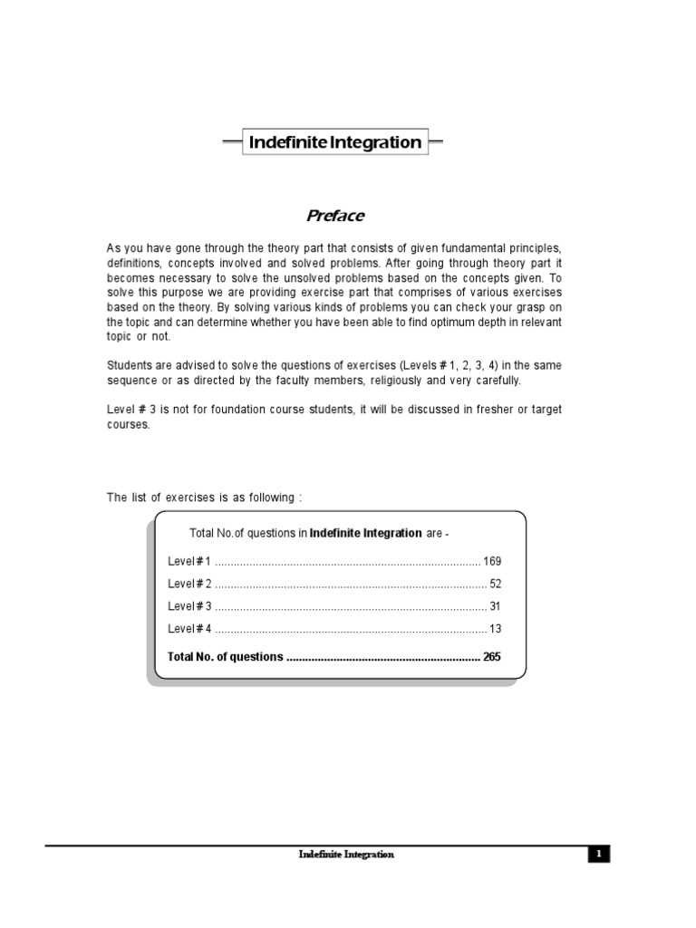 Indefinite Integration Exercises Guide