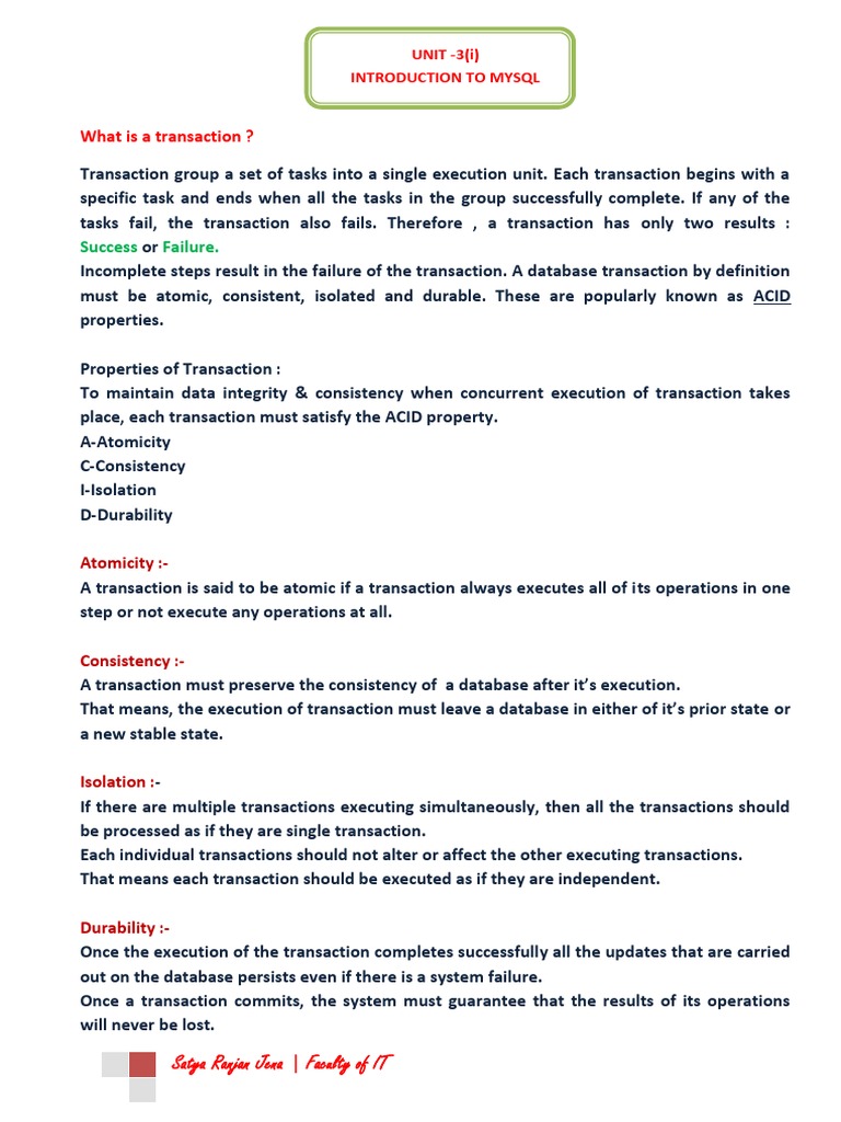 Transaction group a set of tasks into a single execution unit. Each transaction begins with a