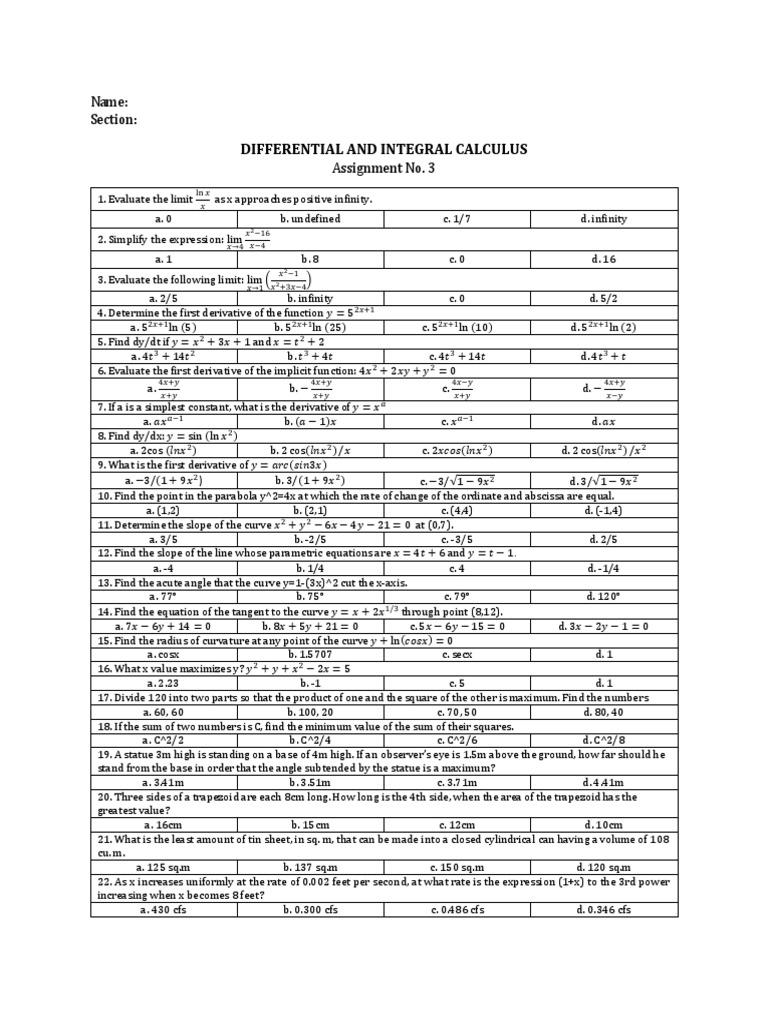 DIFFERENTIAL AND INTEGRAL CALCULUS
