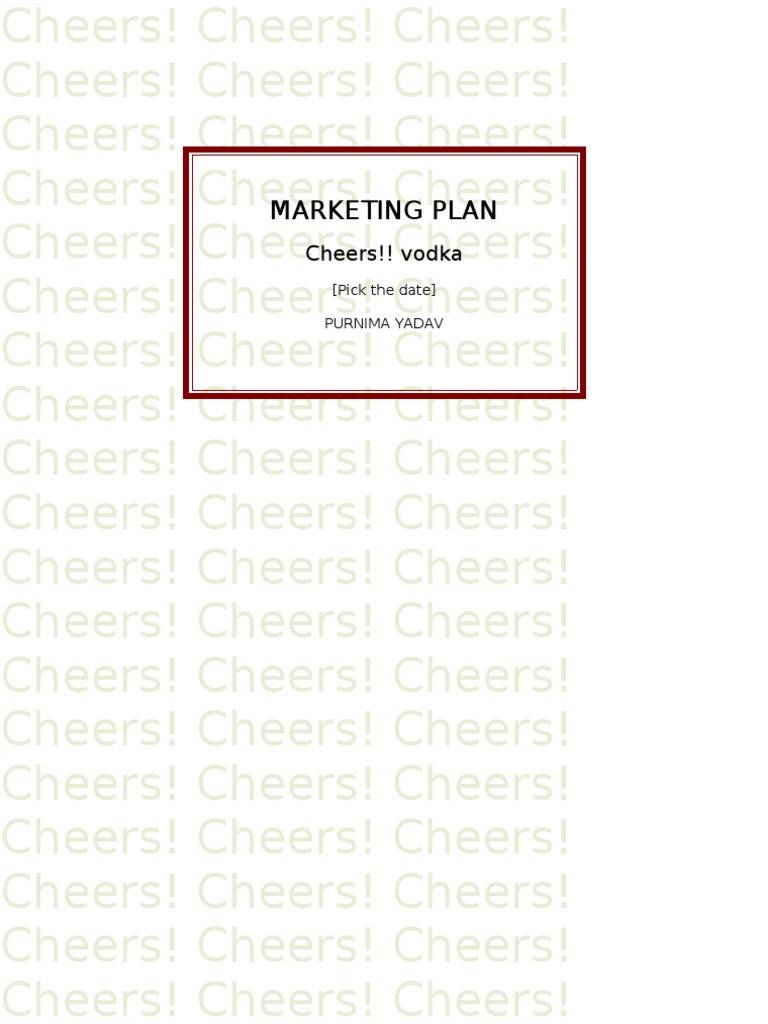 This report is a marketing plan for Kyndal India’s new flavoured vodka ‘Cheer’s’. The report