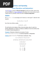 – Example: S = {[1, 2, 0], [−2, 2, 1]}. Since v1 6= cv2 , v1 and v2 are linearly independent.