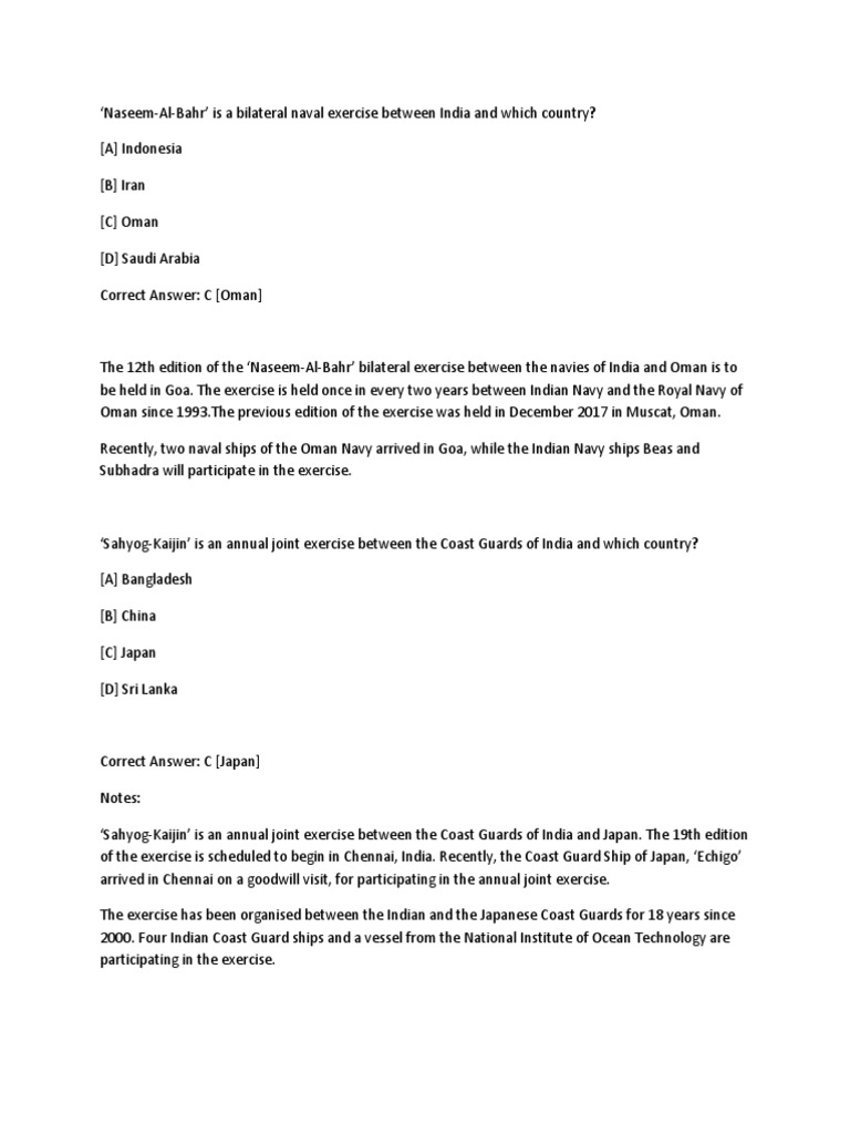 ‘Naseem-Al-Bahr’ is a bilateral naval exercise between India and which country?