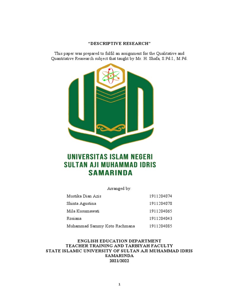 STATE ISLAMIC UNIVERSITY OF SULTAN AJI MUHAMMAD IDRIS