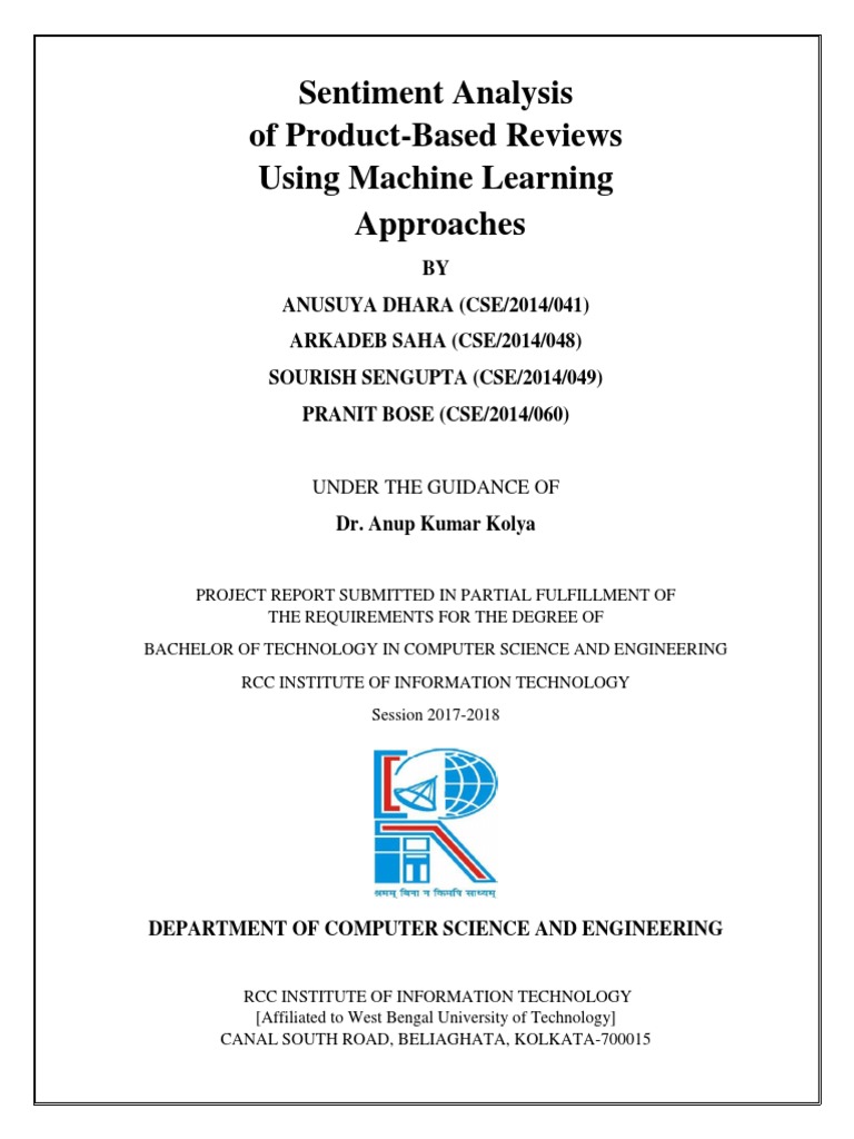 “Sentiment Analysis of product based reviews using Machine Learning Approaches”, which
