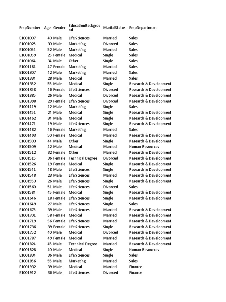 EmpNumber Age Gender EducationBackgrou MaritalStatus EmpDepartment