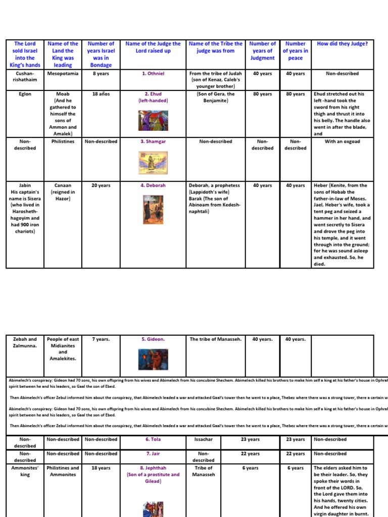 Non- Non-described Non-described 8. Ibzan Tribe of 7 years 7 years Non-described