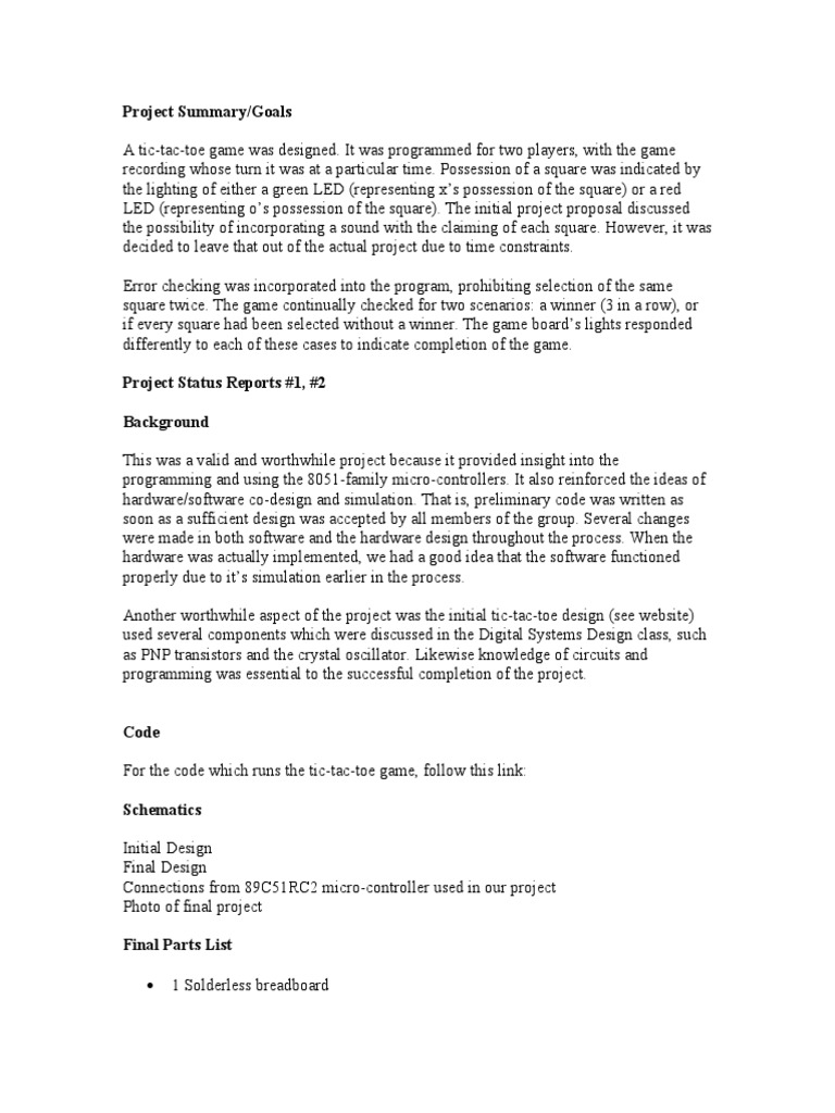 LED (representing o’s possession of the square). The initial project proposal discussed
