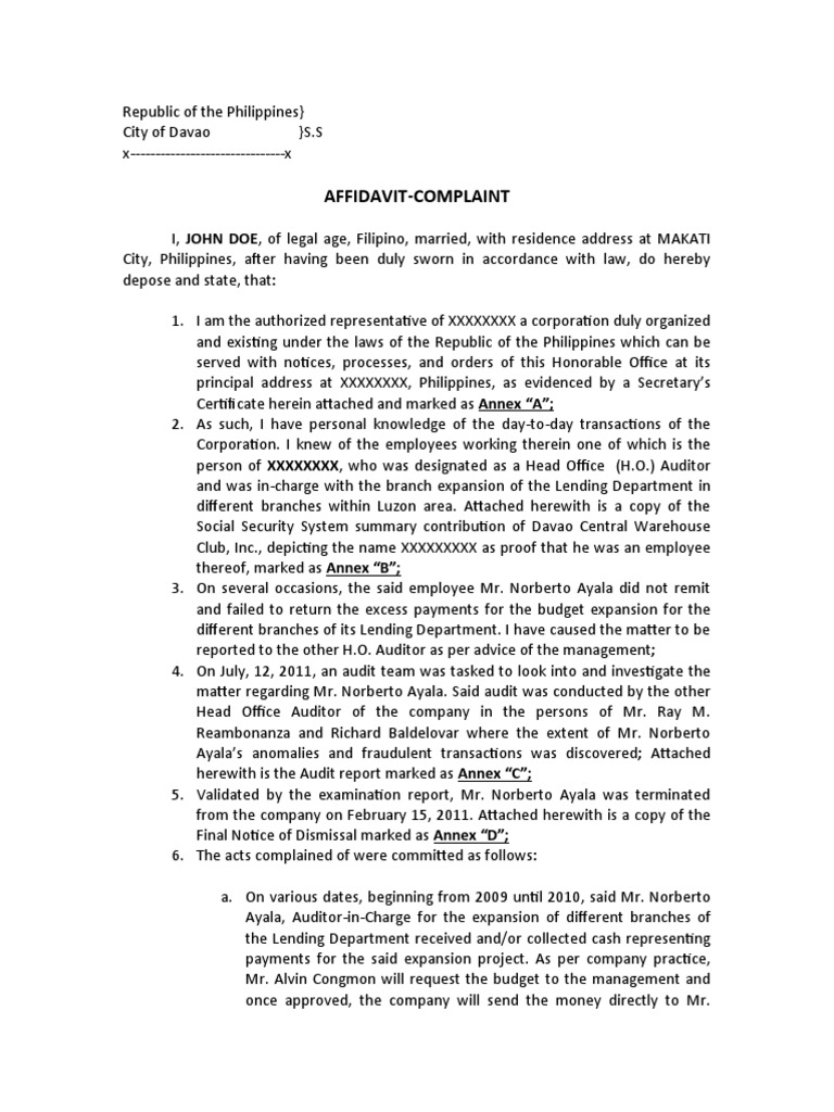 Ayala’s anomalies and fraudulent transactions was discovered; Attached