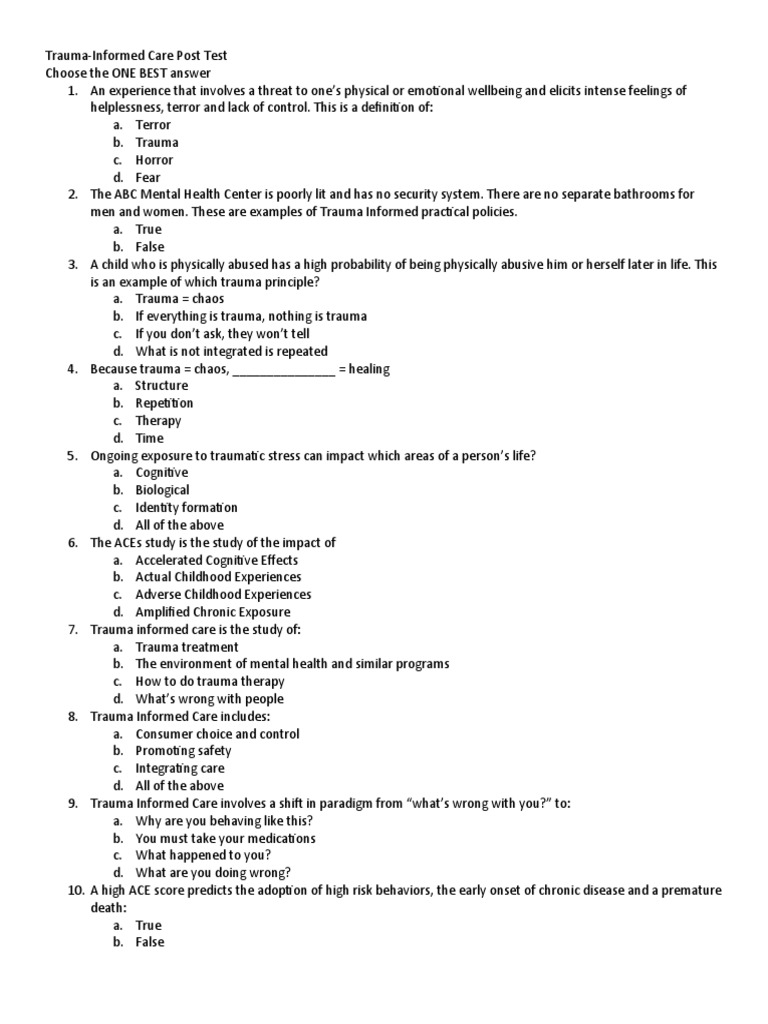 Trauma-Informed Care Post Test