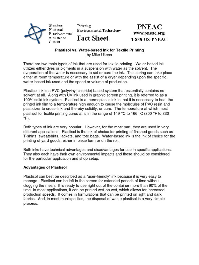 fabrics. And, in most municipalities, the disposal of waste plastisol is a very simple