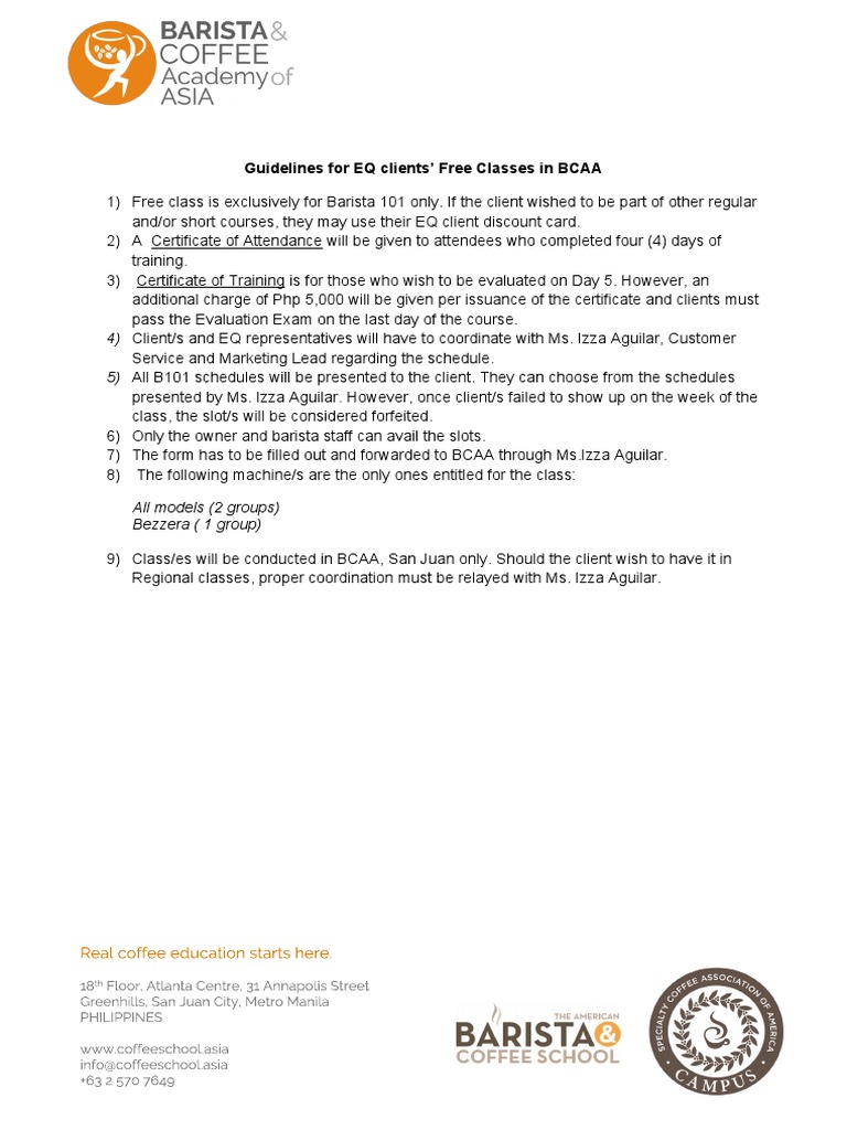 4) Client/s and EQ representative will have to coordinate with Ms. Izza Aguilar, Customer